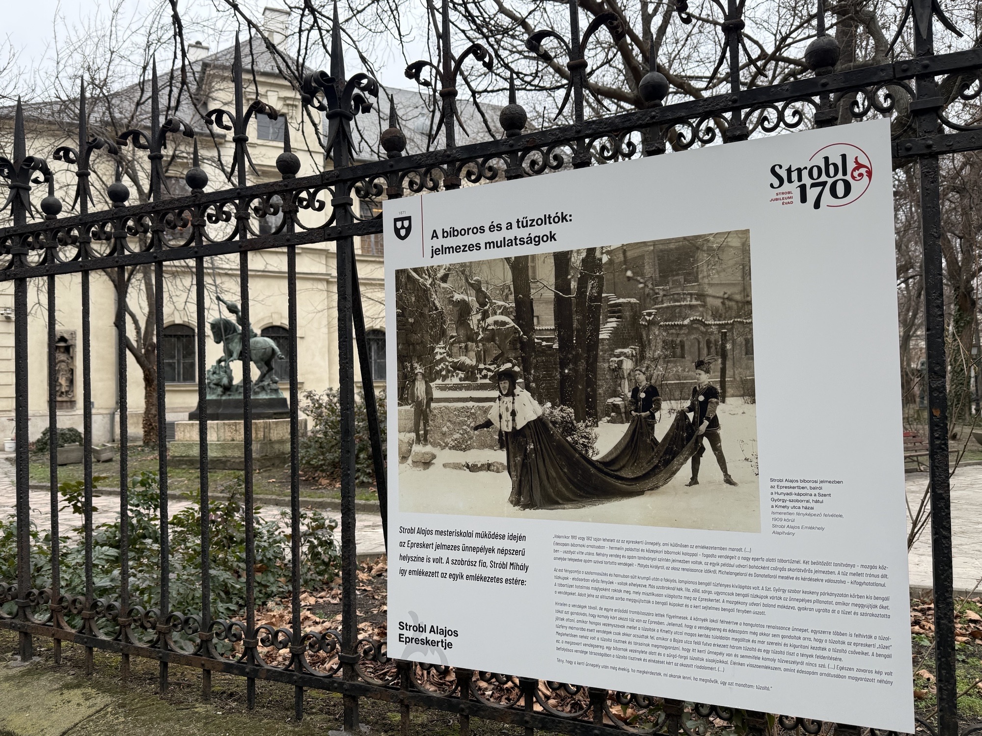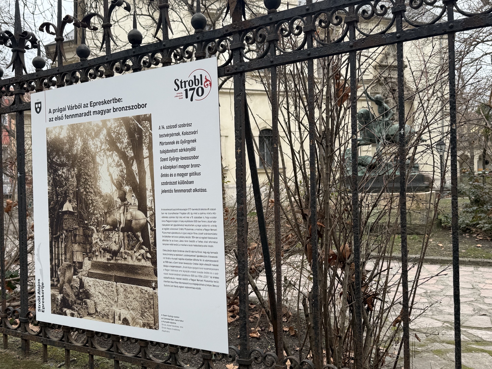 A Magyar Képzőművészeti Egyetem rendhagyó kiállítással nyitja meg a Strobl 170 Jubileumi Évadot. Az Epreskert Bajza utcai és a Szondi utcai kerítésén húsz-húsz nagyméretű tábla idézi meg Strobl Alajos legendás alakját, és meséli el a kert történetét. A látogatók megtudhatják, miként kerültek ide a kerítés mögé, az eperfák árnyékában meghúzódó szobrok, szobortöredékek, a barokk Kálvária és a gótikus épülettöredékek.