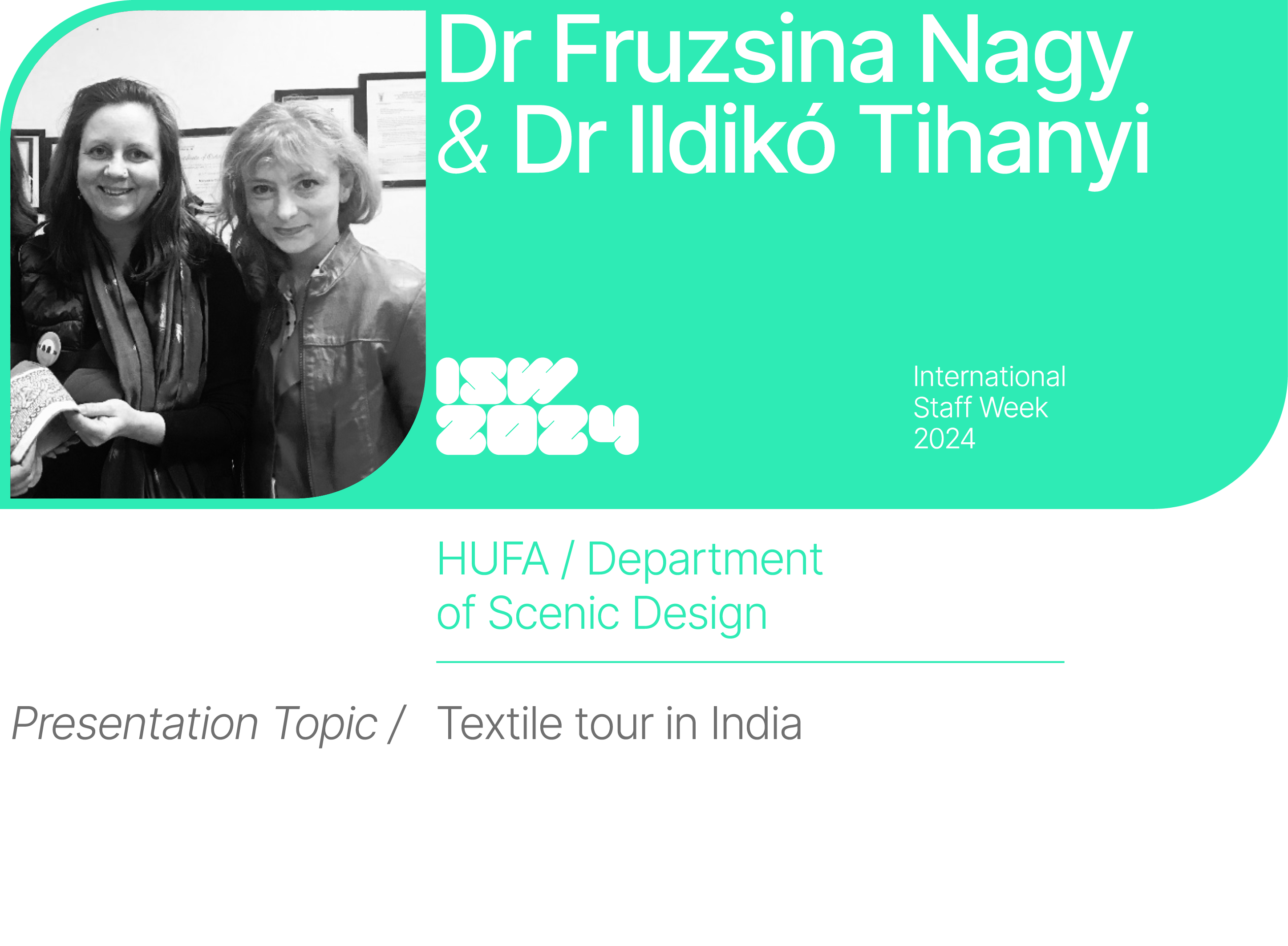 Two colleagues, Dr Fruzsina Nagy and Dr Ildikó Tihanyi from the Department of Scenography, took part in a textile tour in India to study fine textiles’rich and ancient heritage. In their presentation they will share their experinces gathered during this three week trip around India.