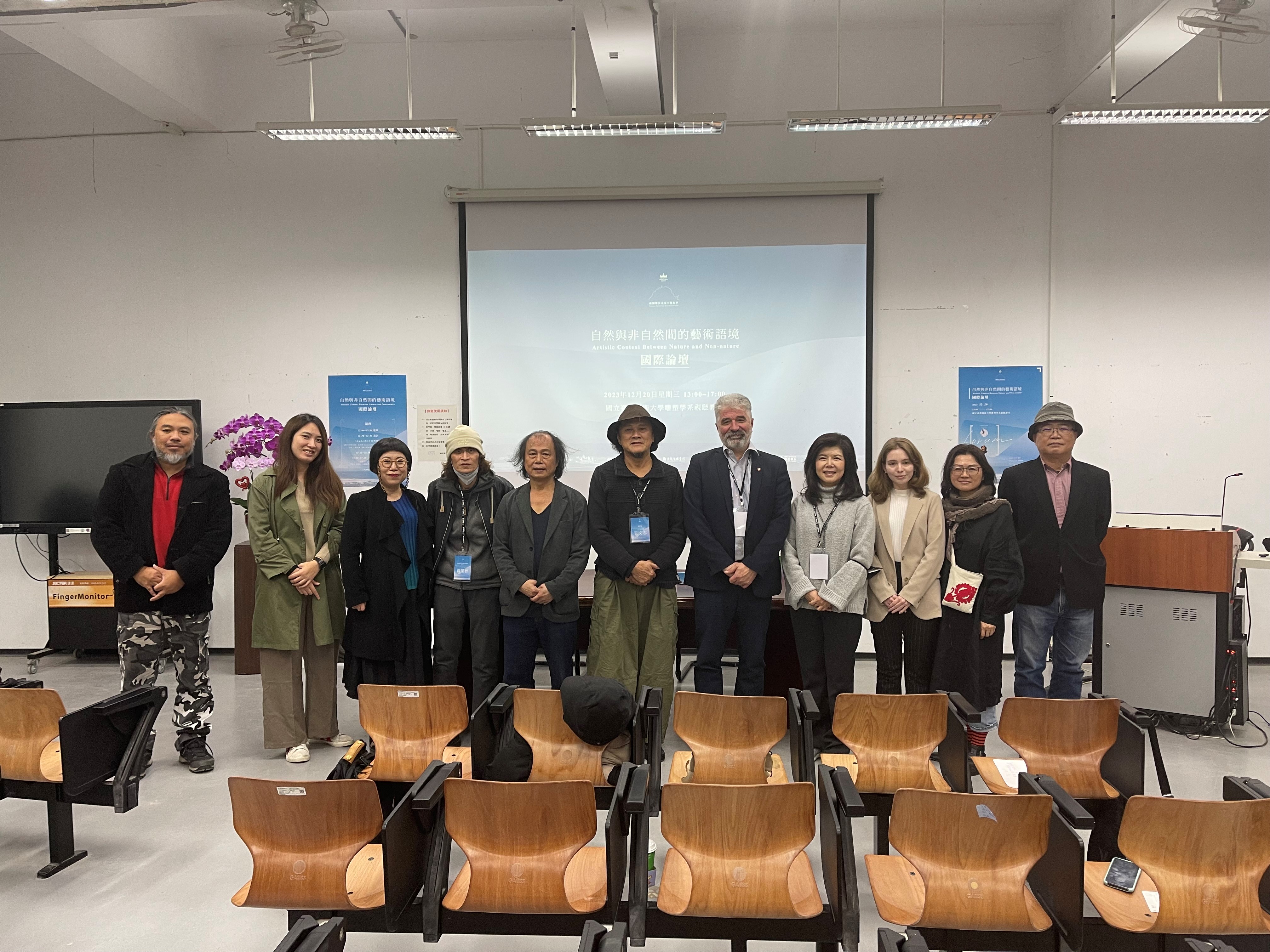 from NTUA, including President, Prof. Dr Shih-Kai Chung, Vice President, Prof. Dr Chia-Cheng Chen, Dean of International Affairs, Prof. Dr Yu-Ling Chao, Head of the Department of Sculpture, Prof. Dr Yun-Hsin Lai, Professor of the Department of Sculpture and the Dean of the Fine Arts College, Prof. Po-Chun Liu, and Director of International Cooperation of OIA, Assis. Prof. Dr Ya-Ting Fan. The Rector of the HUFA was invited by the Ju Ming Museum and its Director, who is also the Dean of the National Taiwan University of Art and Design, to visit Taiwan from 18 to 22 December 2023 to give a lecture on Contemporary Art in the Context of a Natural and Rural Scene at NTUA.
